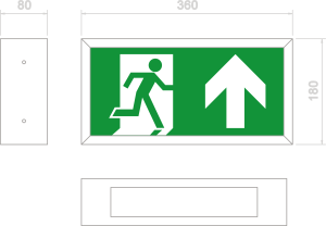 Emergency exit sign, vandal resistant >IK11 (50J) and >IP54 with 1.2mm zinc coated steel body and 4mm polycarbonate LED Opal lens, secured with Resistorx screws. Part L compliant (>95lm/W), low flicker adjustable LED driver, replaceable LEDs with CRI >80 and lifetime in excess of 72,000 hours