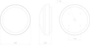 Round bulkhead, >IK10 (20J) and >IP65 with thick aluminium body and 3mm polycarbonate LED Opal lens, secured with Resistorx screws. Part L compliant (>120lm/W), low flicker adjustable LED driver, replaceable LEDs with CRI >80 and lifetime in excess of 72,000 hours